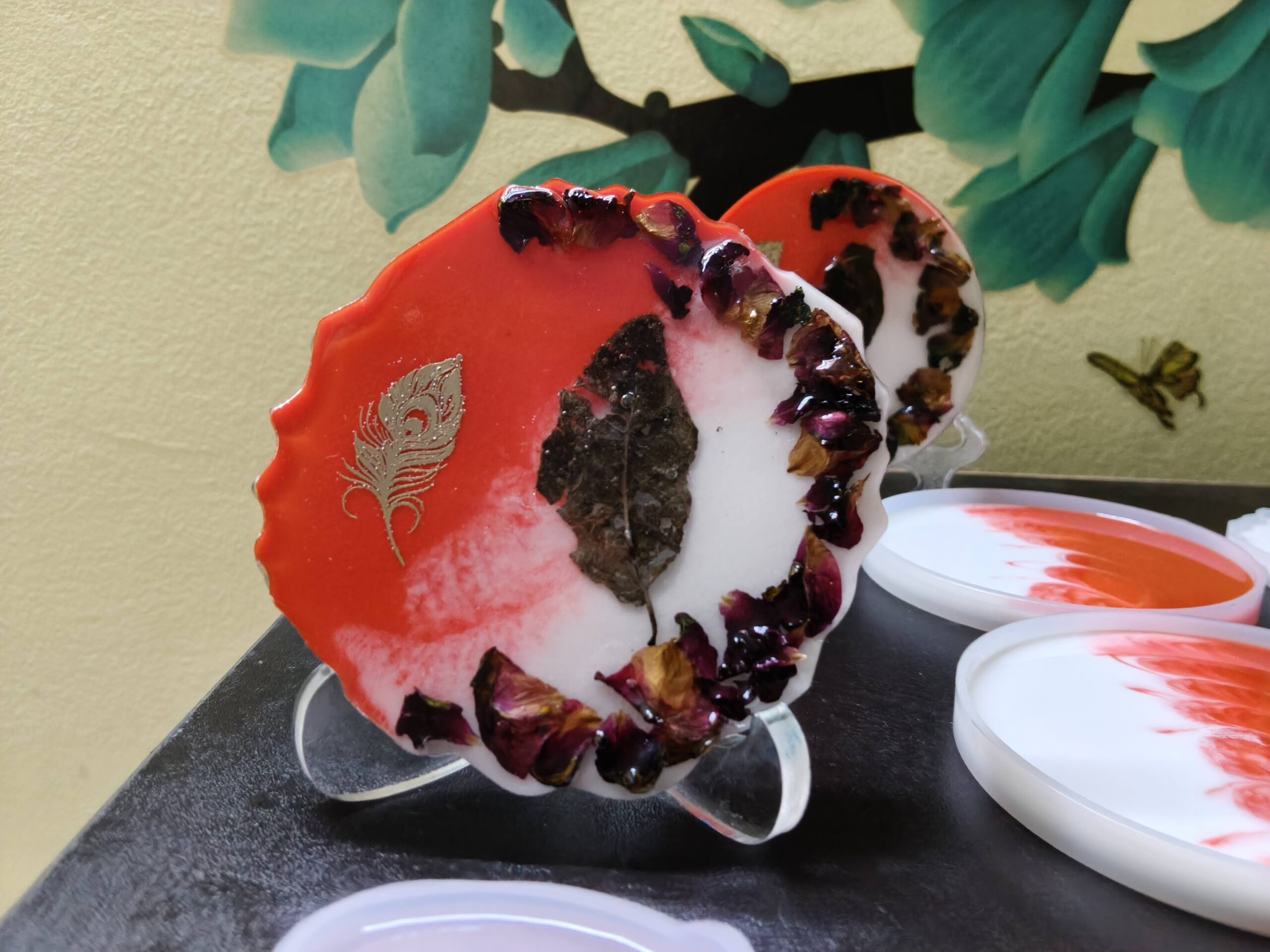 Crafted in durable resin and finished with a glossy, glass-like surface, these coasters aren’t just about looks — they’re functional too. They protect your surfaces from those pesky water rings and hot mugs, all while looking absolutely stunning. Each one is poured, polished, and personalized with care, making it a lovely addition to your morning coffee routine, your dinner party setup, or even your work desk.